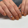 Настя мне понравилась. Творческая, идейная, и маникюр сделала хороший. Выглядит безумно дорого из-за рисунка и из-за матового покрытия (я редко когда делаю матовое, но в этот раз Настя меня убедила, за что хочу её поблагодарить). Прокрашены ногти хорошо, форма классическая, но в целом маникюр не смотрится банально. Рекомендую Настю.